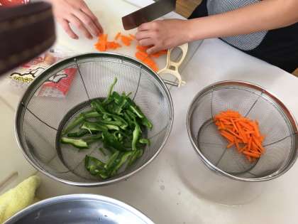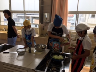 6年生が「いためてつくろう朝食のおかず」の調理実習をしました。先日、栄養指導で朝ごはんの学習もしました。バランスよい献立を考え、協力して作っていました。
