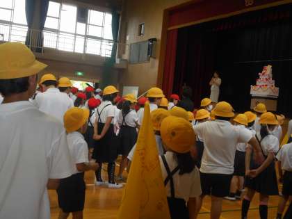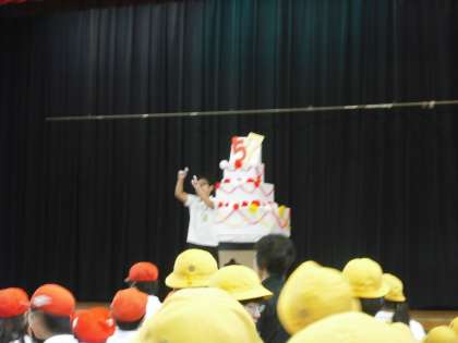 6月6日は、苅田小学校の創立記念日です。児童集会で、苅田小学校第57回お誕生日おめでとう会を行いました。これまでに、苅田小学校から9300人の卒業生が巣立っています。ハッピーバースデイの歌や校歌を歌ったり、クイズをしたりしてお祝いしました。