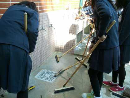 みんな、一生懸命してくれたので、ほうきはピカピカです!
