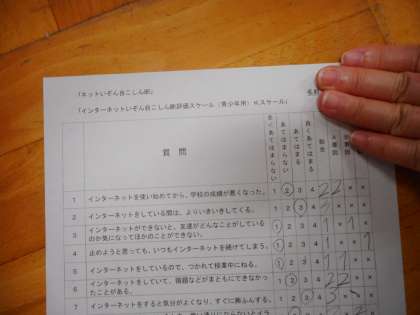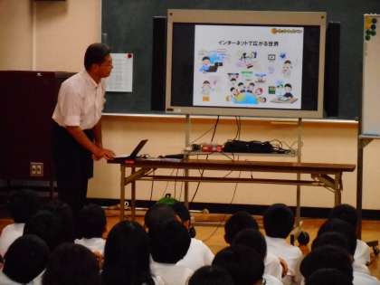 6年生の「e−ネットキャラバンケータイ教室」がありました。インターネットはいろいろな世界につながっており、大変便利なものです。しかし、使い方をあやまるとたくさんの危険がまっています。ネット依存、ネットいじめ、個人情報の流失、著作権・肖像権の問題等…。危険を回避するためには、1日1時間以内の使用時間にする、夜9時以降は、家の人に預ける等のルールを決めて、守ることが大事です。また、何か、おかしいな、危険だなと感じたら、家の人にすぐに話すことも大切です。最後に、ネット依存自己診断をしました。