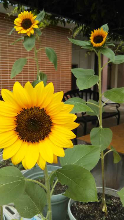 学校の木には、セミの脱け殻がたくさんついています。朝はセミの大合唱でした。花さかすみちゃん事業でいただいたヒマワリの苗も黄色い花を咲かせています。