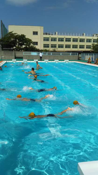 まさに、プール日より。3年生が蝉しぐれの中、気持ち良さそうにプール水泳に励んでいます。
