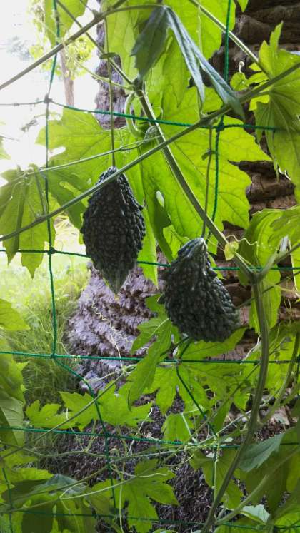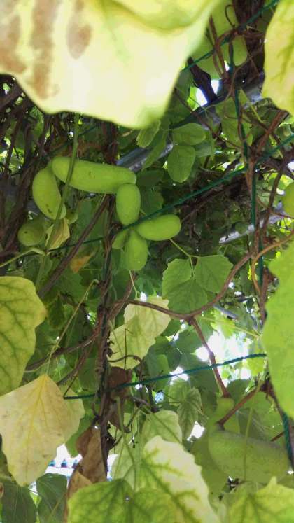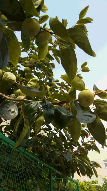 厳しい暑さの中、校庭のいろいろな実が少しずつ大きくなっています。さて、何の実でしょう?