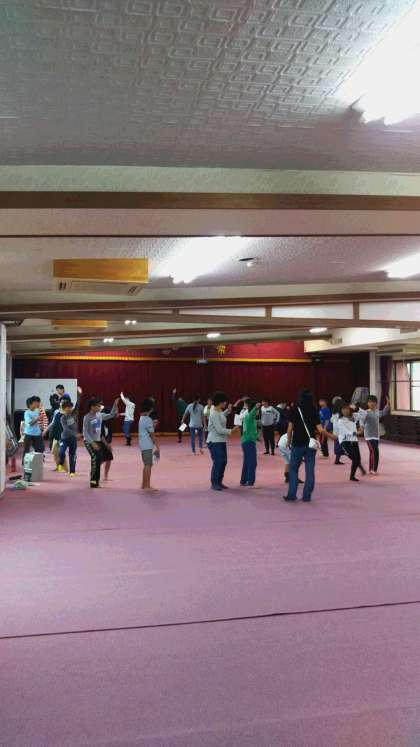 ただいま入浴中。キャンプファイアのスタンツの練習もしています。