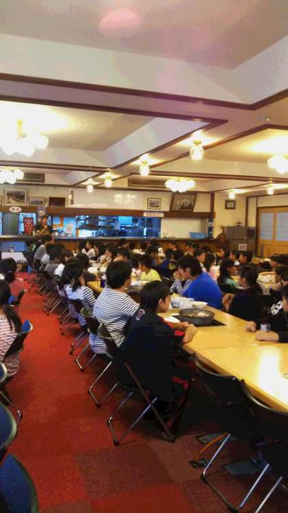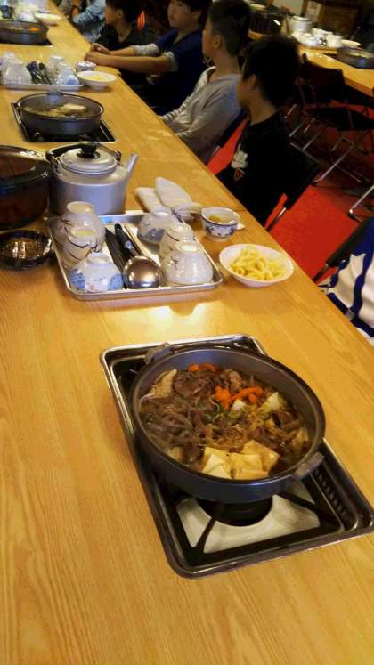 賑やかに夕食が始まりました。メニューは、すき焼きです。みんなすごい食欲です。