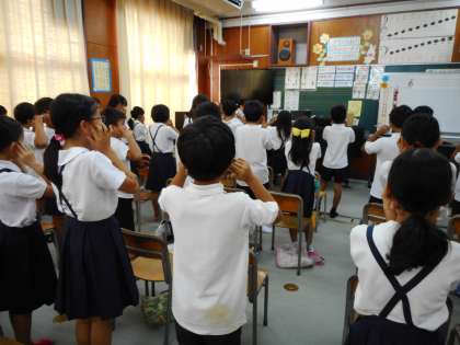 オーボエと木のリコーダーのお話を聞いたり、「小さな世界」の歌を、あごの関節が動いているか確かめながら歌いました。同じ言葉を繰り返すところは、だんだん大きく盛り上げていくように工夫しています。