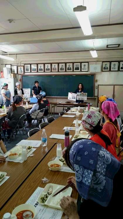 PTA主催の給食試食会が開催されました。苅田北小学校の鳥飼栄養教諭をお招きし学校給食や栄養についてお話をしていただき、給食調理員さんから本校の給食についてのお話を聞いて試食をしました。今日の献立はコンクール受賞献立で大変おいしく頂きました。