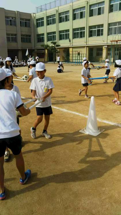 今日の児童集合は、集合委員会の「大きな宝を運びだせ」でした。縦割り班で楽しく活動しました。