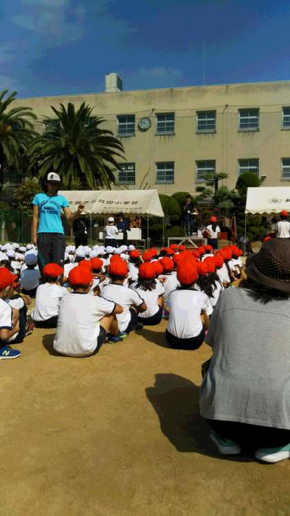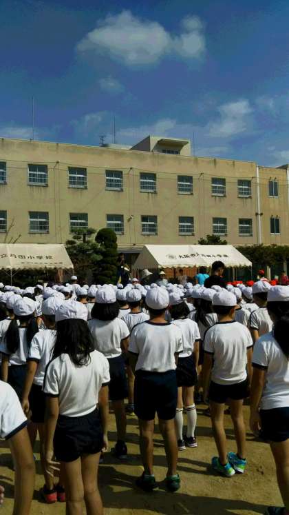 今日は、晴天。2時間目、運動場の入退場と開会式の練習をしました。