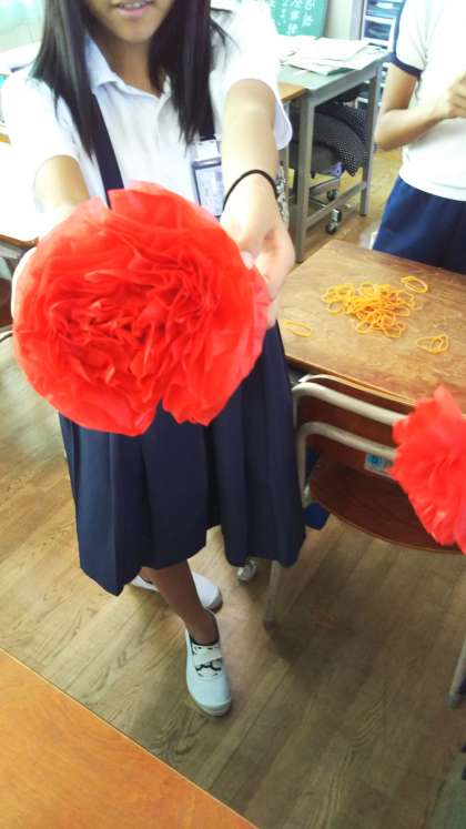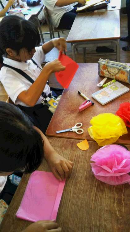 新聞委員会、集会委員会では、飾りの花を作っています。