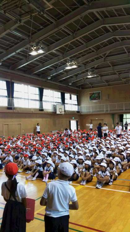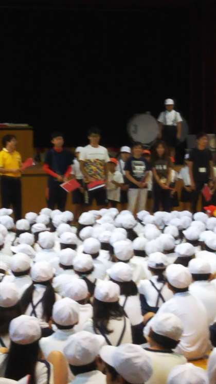 児童集会で、運動会応援歌の歌合戦がありました。赤組が勝ちました。昨年の運動会は、白組が優勝だったので赤組は、リベンジに燃えています。赤組、白組、がんばれ!