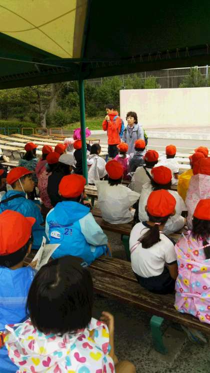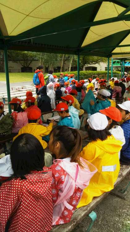 グループで行動している途中、パラパラと雨が降ってきましたが、子どもたちは元気一杯。無事、ゴールに到着しました。