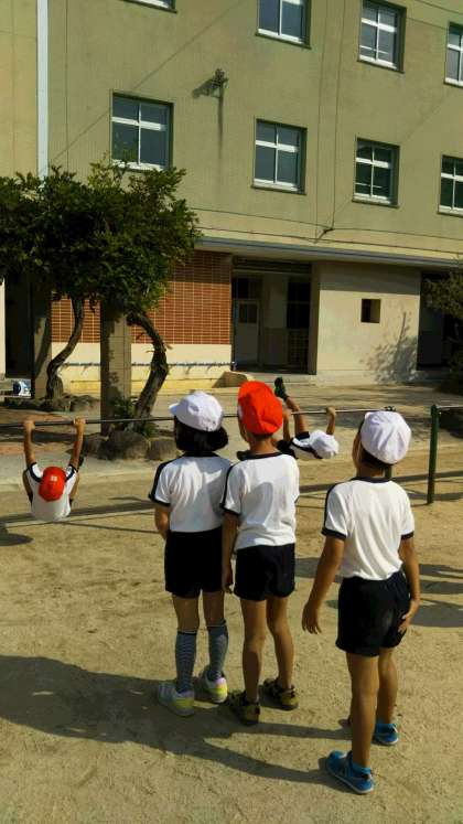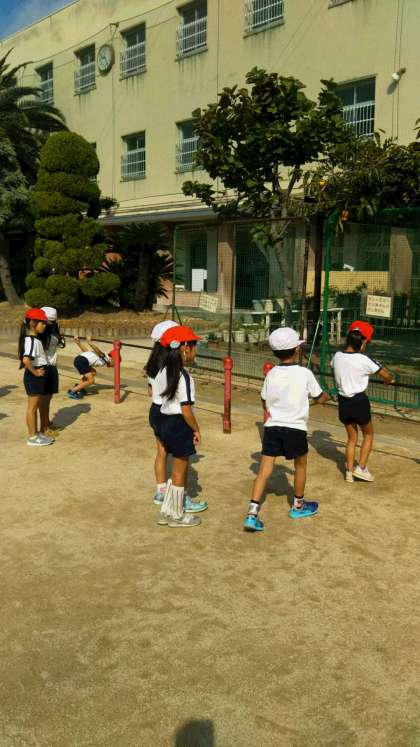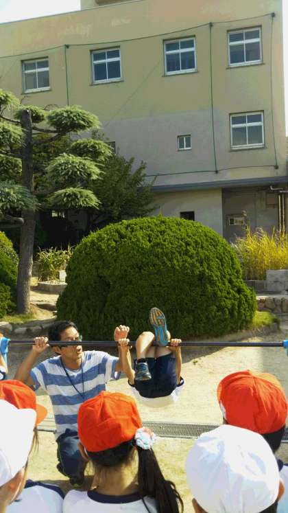 鉄棒で回ったり、ぶら下がったり楽しく挑戦しました。