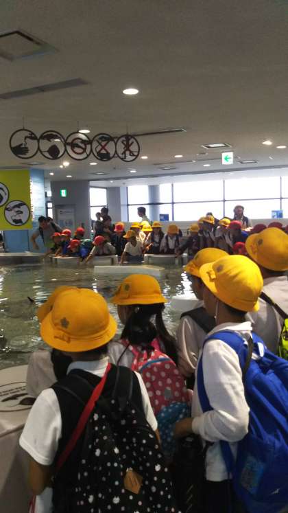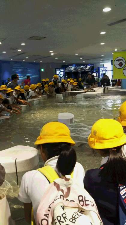 ふれあいコーナー。サメやエイにタッチしました。