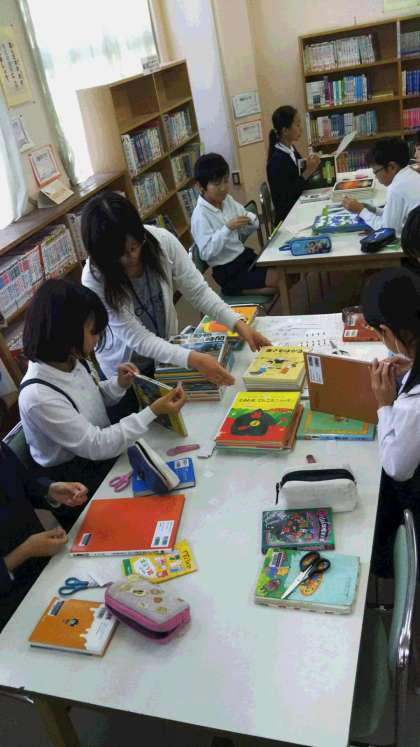 図書室シール貼り作業2