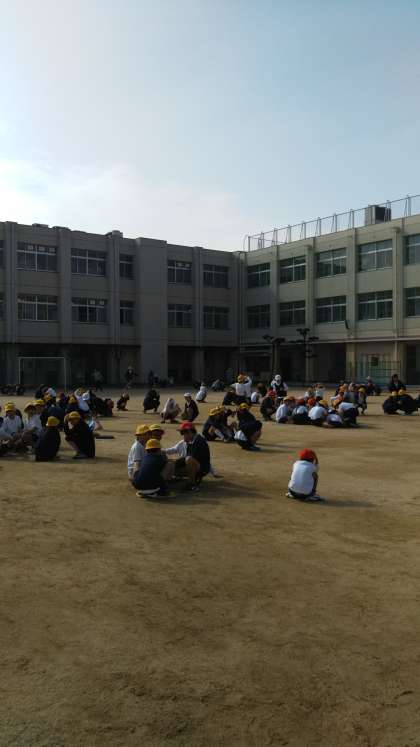 その後全員が運動場に避難し、人数確認をしてから校長先生の話を聞きました。
