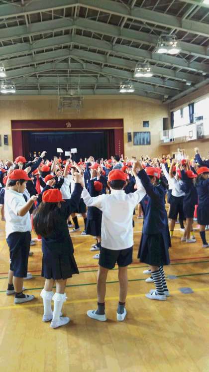 今日は、イントロクイズでした。3つの選択肢の中から選びます。1、2、3番でポーズが決まっており、班で相談して示します。