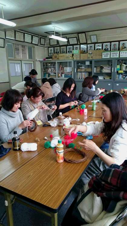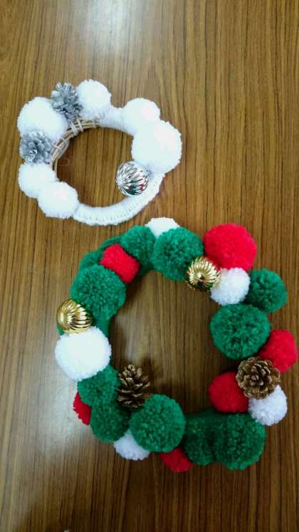 人権教育委員会が企画した手芸講習会で、毛糸のポンポンでクリスマスリースを作りました。寒い季節にほっこりする作品が出来上がりました。