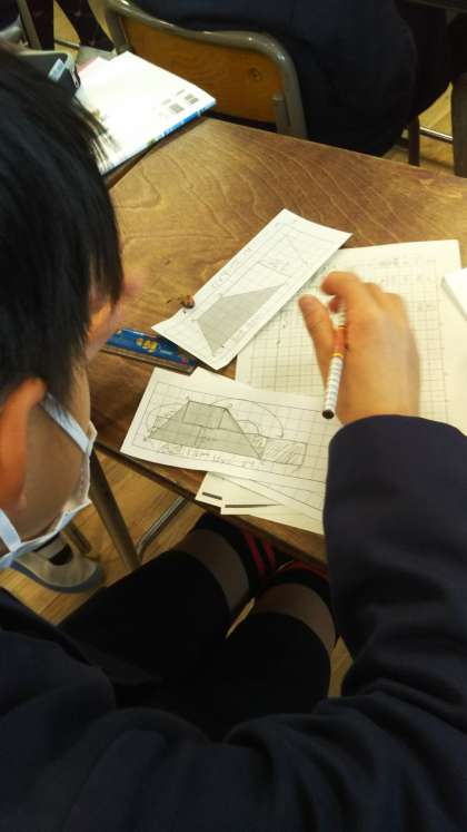 台形を三角形に分けたり、長方形や平行四辺形に変形させたりして、面積を求めています。