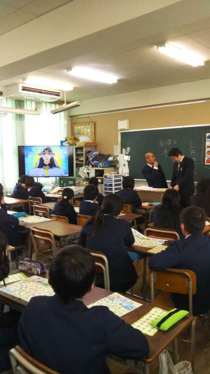 税務署の方々に来ていただき、税金の使われ方の学習をしました。もし税金がなかったらどうなるかというアニメを見て、税金はみんなで自分たちの暮らしを支えるものであることを学びました。
