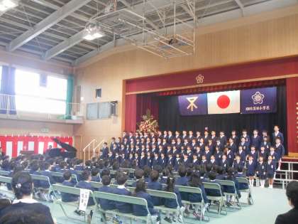 2年生の「学校へ行こう」という呼びかけと歌も体全体を使ったとても楽しいもので、新入生も聞き入っていました。来賓の方々からもお褒めのことばをいただきました。