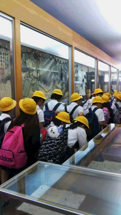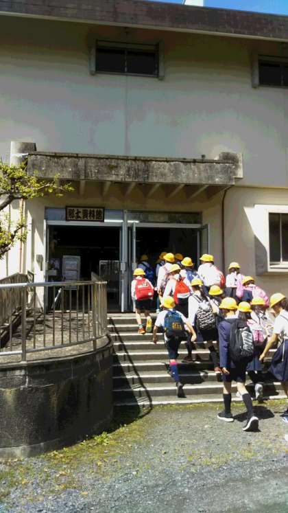 郷土資料館に到着、昔の道具や家を見学しました。