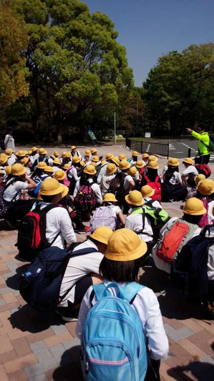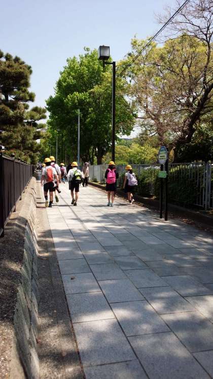 大仙古墳のまわりを一周しました。みんなで協力して一周で何歩かかるか数えてみました。