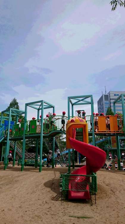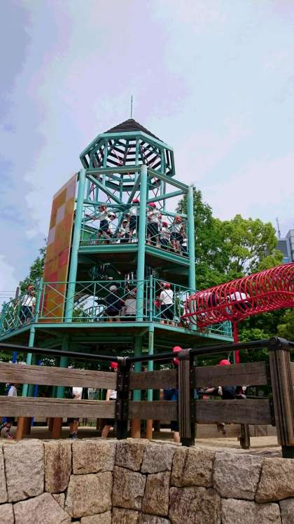 お弁当とおやつの後、少し遊んでからお城の中を移動し公園に着きました。複合遊具でたっぷり遊びました。