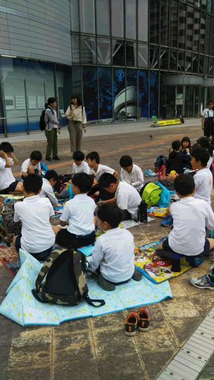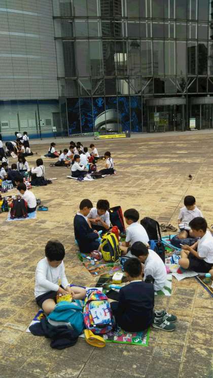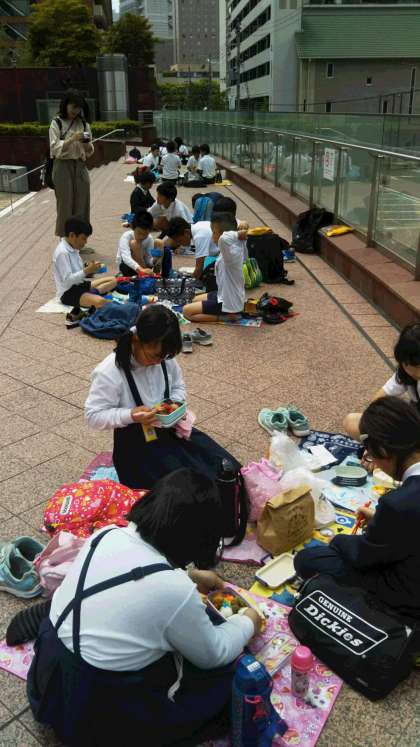 お弁当、おやつタイム。鳩さん、あっちへ行っててね。
