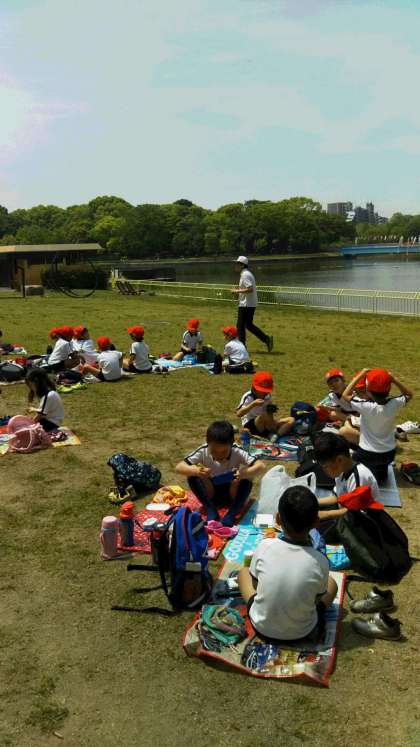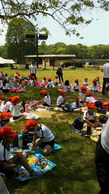 少し早いですがお弁当タイムです。楽しくお話をしながら、賑やかに過ごしました。時おり、爽やかな風が子どもたちの間を吹き抜けていきます。