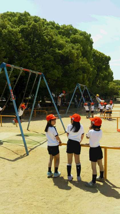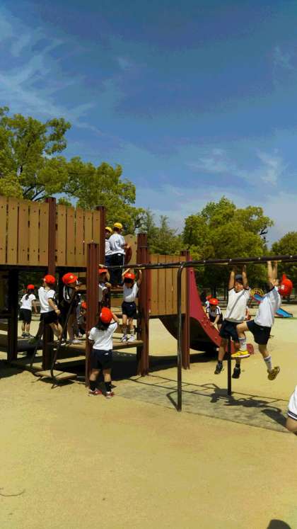 遊具の広場で最後にもうひと遊び。子どもたちは元気一杯。お茶が足りません。もうすぐ学校に帰ります。