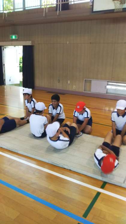 体力測定が始まりました。3年生が50m走、反復横跳び、上体起こしをしました。2年生の時の記録よりどれくらい伸びたでしょうか。