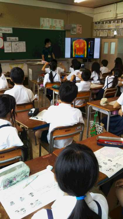 朝ごはんの大切さを体温の上昇のサーモグラフや全国学力・学習状況調査のクロス評価のグラフなどを使って学びました。