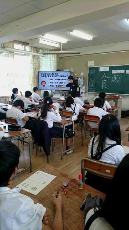 6年生が今年度初めて、本多栄養教諭の食育の授業を受けました。「食について考えよう」「人はなぜごはんを食べるの」「人に良い食をなぜ食べないのか」(バランスの良い食事)のテーマを大型テレビに写真や絵を使ってのクイズ形式などで掘り下げていきました。みんなからたくさん意見が出てきました。最後はグループで意見をホワイトボードにまとめて発表しました。食の大切さ学びました。