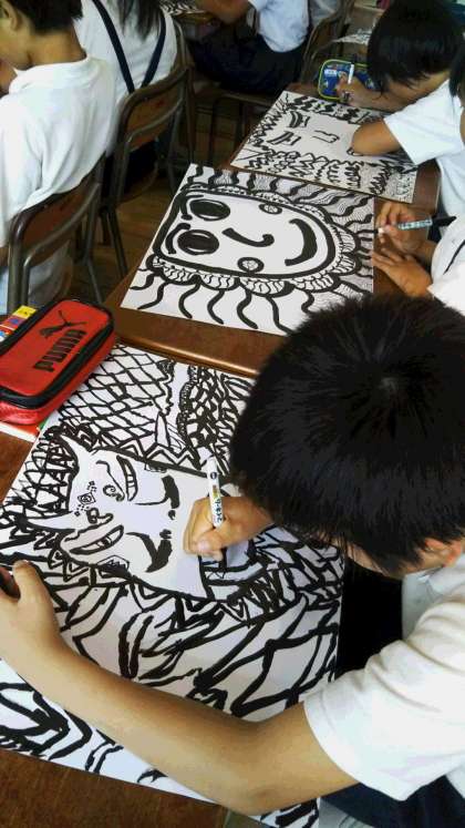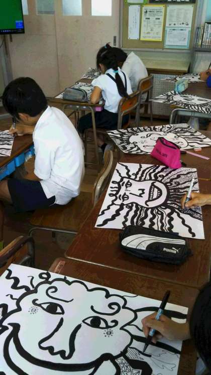 迫力のある太陽の顔ができ上がってきました。各々の画面に向かって一言もしゃべらず集中して取り組んでいます。