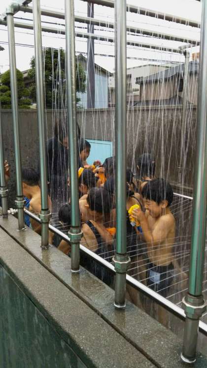 初めての小学校でのプール水泳です。アヒルの体操をプールの中でしました。まだ顔を水につけられない子どもたちもいますが、楽しく活動しました。