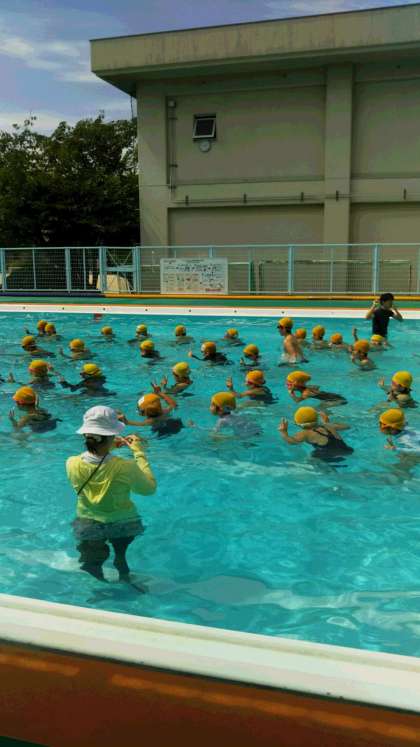 カニになって息をはいたり、水の中で力を抜いたりしたあと、けのび、ばた足の練習をしっかりしました。