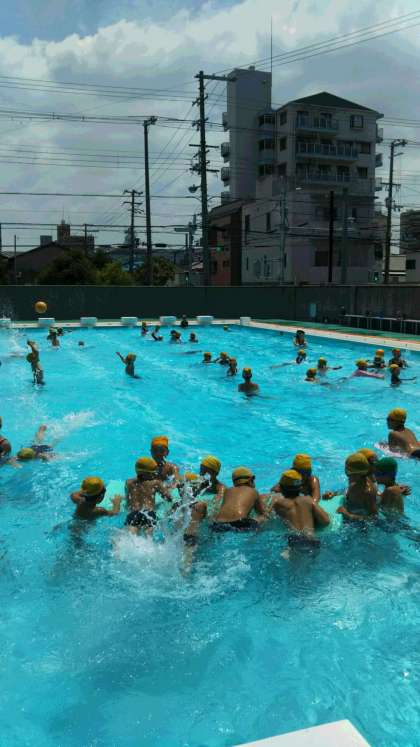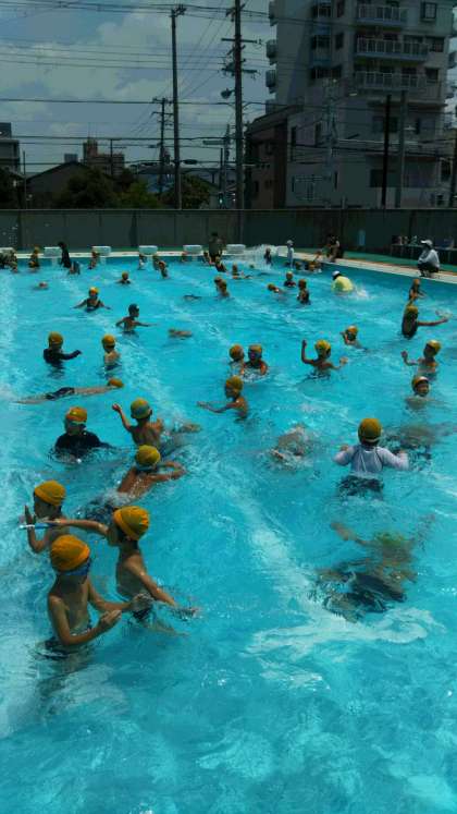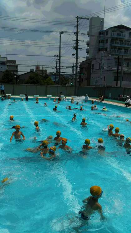 連日、猛暑日が続いています。プール開放にはたくさんの子どもたちが元気に参加しています。プールサイドに水筒を置いて、水分補給をしながら活動しています。熱中症は、水の中でも安心できません。寝不足や疲れが出てきた子どもたちは、参加を見合わせた方がいいかもしれませんね。