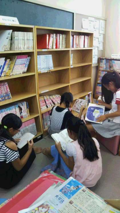 今週は、午前中としょっぴぃさん方にご協力いただき、図書館開放をしています。委員会の子どもたちも貸し出しのバーコードの読み取りをしたり、紙芝居をしたりしています。涼しい図書室で、楽しく本を読みましょう。