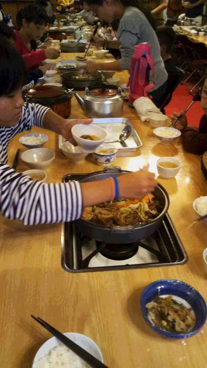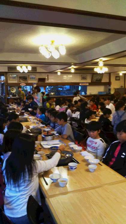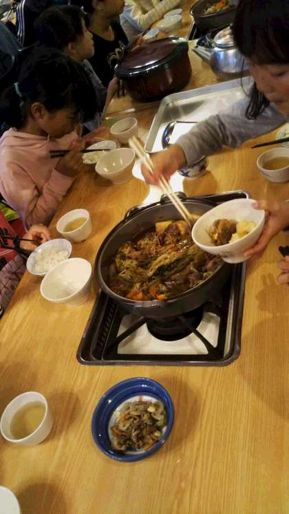 夕食のメニューは、すき焼きです。みんな、もりもり食欲旺盛。全員元気!
