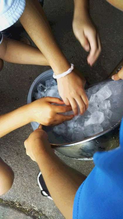均等に冷やすためにコロコロ、ゴロゴロころがします。協力してがんばりました。