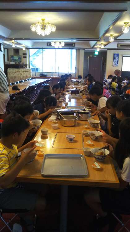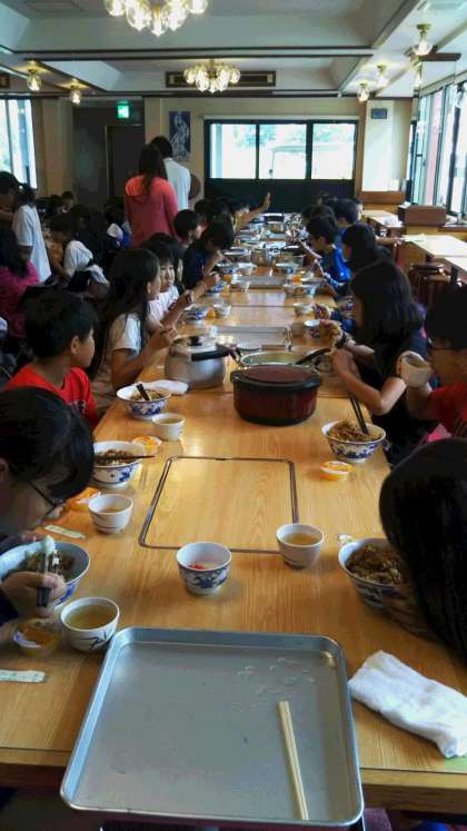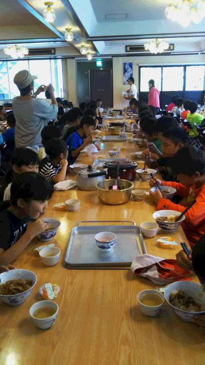 ハチ高原最後の食事、牛丼です。アイスクリームの後でしたが、もりもり平らげていました。