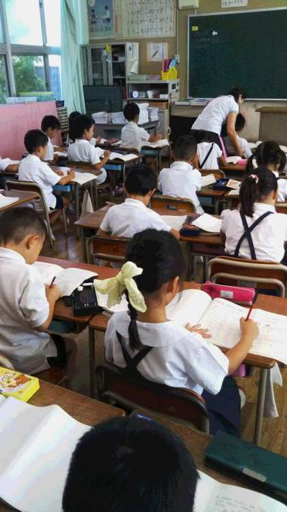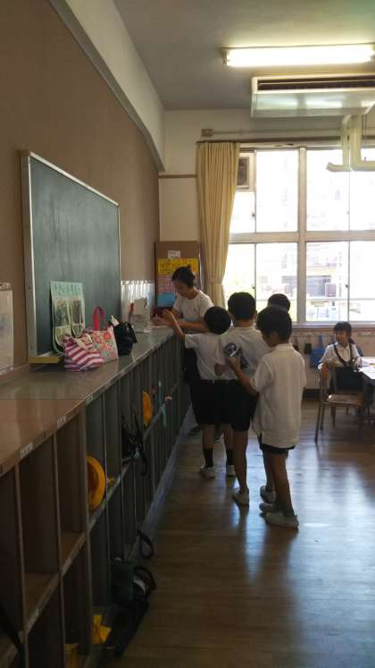 そのあと、各教室では、夏休みの作品を提出したり、宿題の丸付けをしたりしました。