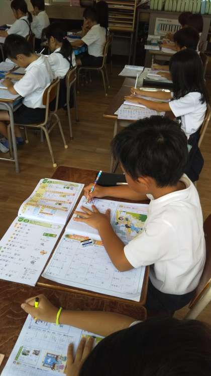 新出漢字と「声にだしてみよう」の学習をしています。2年生では、1年間に160の漢字を学びます。1年生の時の2倍で画数も増えてきます。漢字ドリルやノートを使って練習しています。