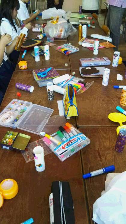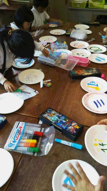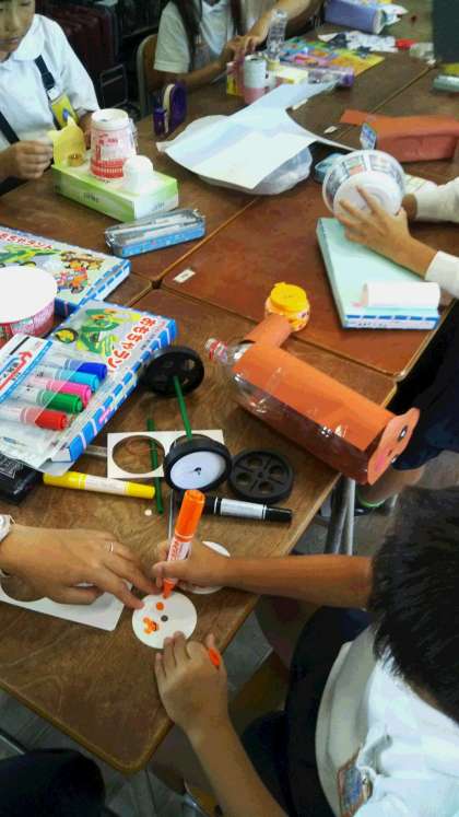 おもちゃ作りをしています。でき上がったら1年生と一緒に遊びます。1年生はどんなふうにしてあげれば喜んで遊んでくれるかなと考えながら作っています。