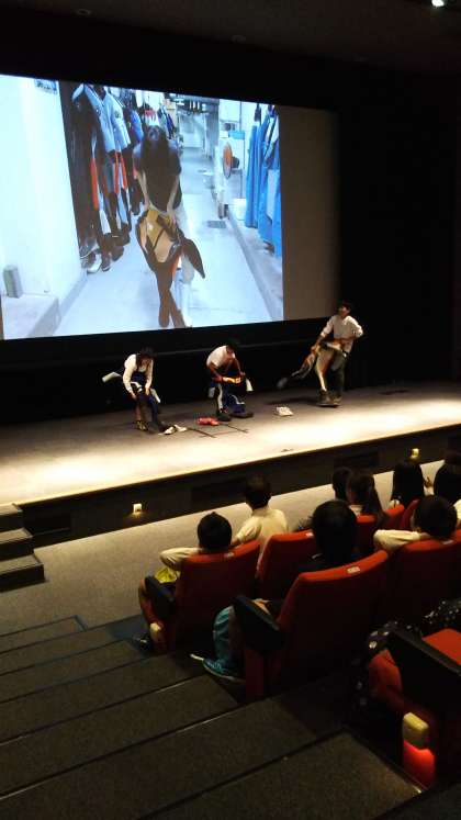 魚や動物達の飼育や展示、掃除、餌やりなどの仕事を紹介していただきました。掃除の時に体を固定する吸盤の実験やドライスーツ着衣体験もしました。