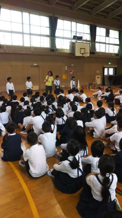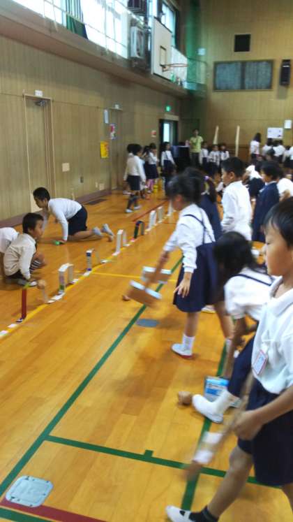 そのあと九つのコーナーに分かれて活動します。1年生は、順番にコーナーを回っていきます。