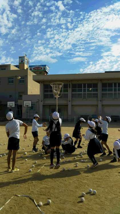 集会係を中心にミニ運動会を行いました。計画、運営も子どもたちで考えて行いました。秋の空が気持ちよく広がっています。