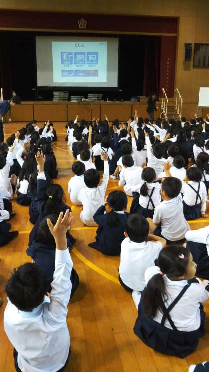 住吉区総合防災訓練にあわせて、全校で防災学習を行いました。避難訓練後には、地活協の会長様や区役所の防災担当の方にもお話をいただきました。