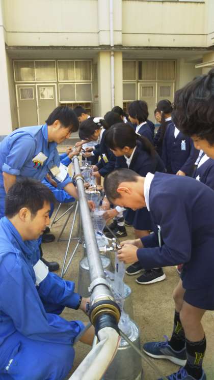 体験訓練 給水車(大阪市水道局) 簡易トイレ(大阪市環境局)